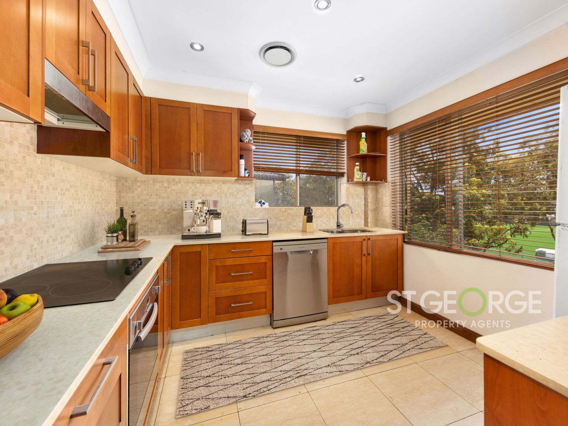 - Sleek large timber kitchen with a dishwasher and ample cupboard and bench space
